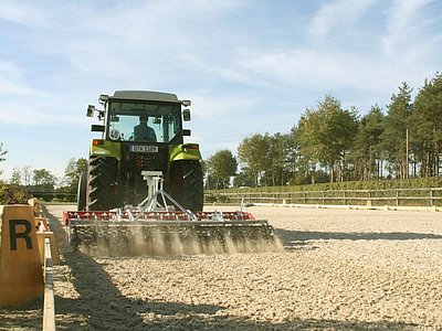 The footing layers can be combined with various additives, such as non-woven chaff, IRS equestrian wood chips, organic non-woven chaff, at the sand works or on site. The footing layer is installed with the aid of laser levels, i.e. with millimetre precision.