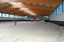 Arpolith absorbs any water that penetrates the surface, binding it by way of partial swelling. Excess water ingress is drained off either at surface level or under the ground. Arpolith also reacts to any moisture within the sand, which effectively reduces dustiness over the long term.