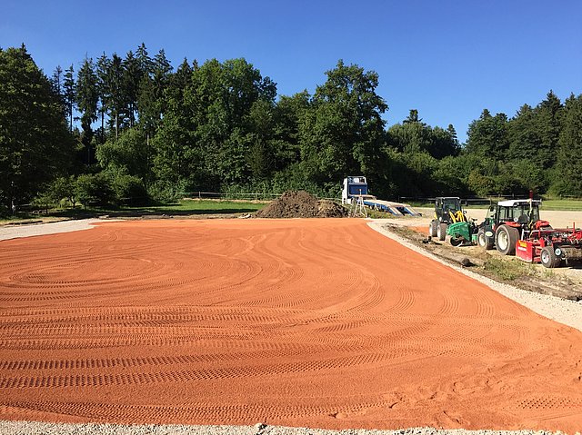 - CH-8610 Uster: Egli Gartenbau AG, 800 m² Reitplatz mit Lochmatten, Tretschicht-Mischung mit Vlieshäcksel