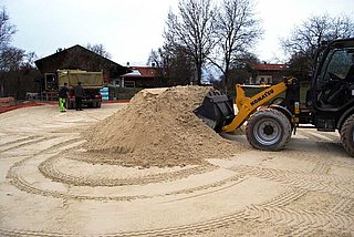 - D-83371 Stein, 1.000 m² Hallenboden neu mit Trennschicht-Matten, premium Natur-Quarzsand mit Naturfaserhäcksel