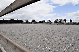Aussenreitplatz 25 x 61 erstellt mit Tragschicht-Aufbau, Drainage, Ziegelsand-Trennschicht, Premium Reitsport-Quarzsandmischung mit premium Vlieshäcksel gemischt, Beregnungsanlage für 1.525 m² kpl installiert und Reithallenbodenpflege