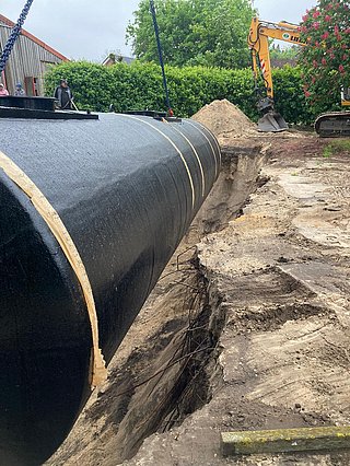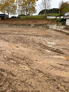 Start des Ebbe-Flut Reitplatzprojektes 2.800 m², mit dem Einbau einer 80.000 Liter Zisterne für eine zukunftsweisende Wieder-Nutzung von Regen- und Brauchwasser . Die Zisterne soll das von dem Reithallengebäude abfliessende Regenwasser für eine ökonomische und ökologische Wasser-Bewirtschaftung weiternutzen, d.h. das gespeicherte Wasser wird bei Trockenheit dem Ebbe-Flut Reitplatzsystem zugeführt .Gleichzeitig wird das nach Regenfällen überschüssige Regenwasser aus dem Ebbe-Flut-System in den Zisternenspeicher gepumpt.